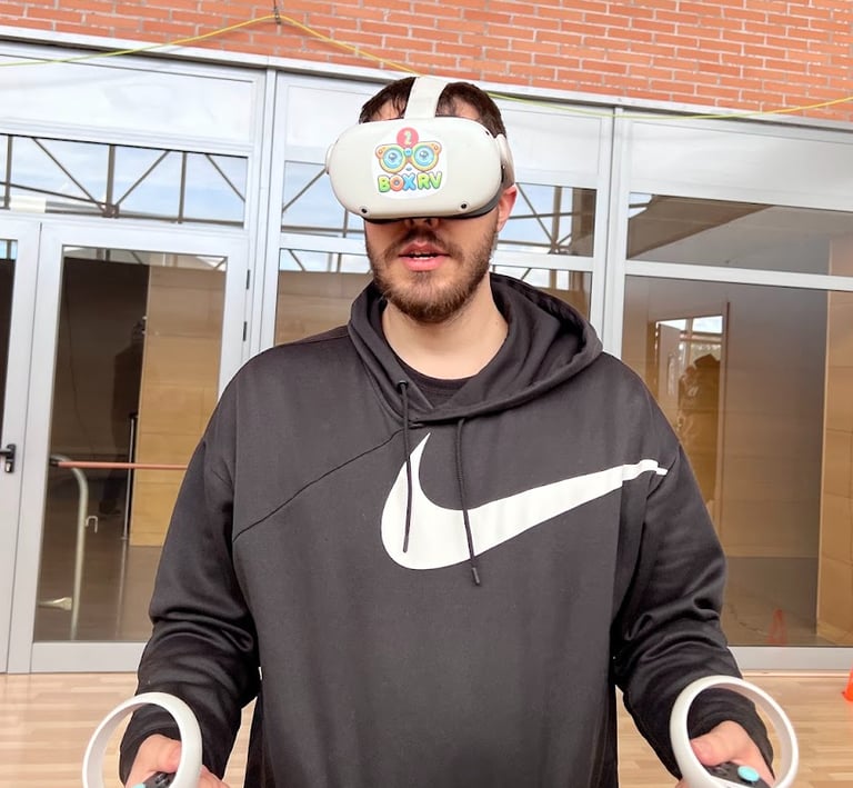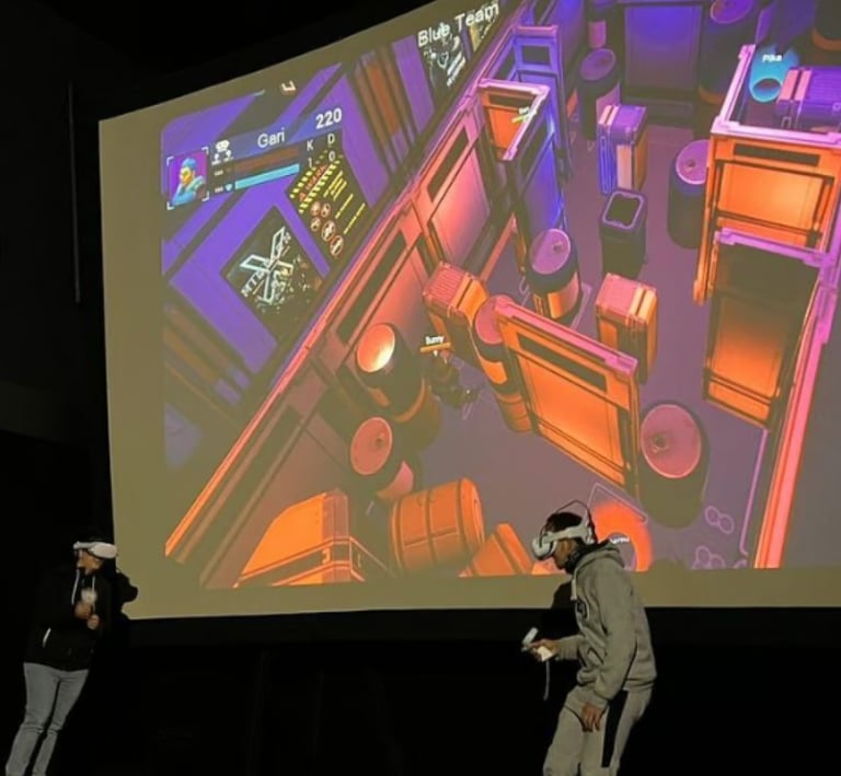 Ofrecemos eventos a domicilio con actividades de laser tag y misiones cooperativas en realidad virtual, ideales para cualquier celebración o reunión social.